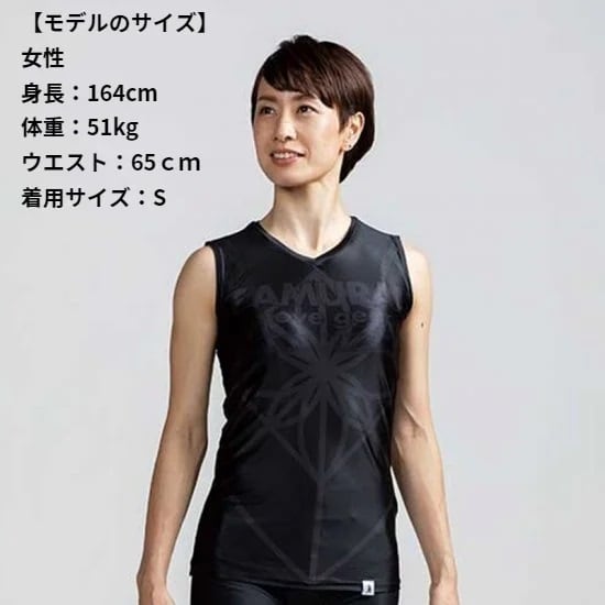 *体に密着するフィットです。モデル写真とサイズ表を比較しご参考としてください